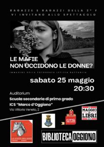 Dopo gli spettacoli mattutini presentati alle classi seconde della scuola secondaria del nostro Istituto, gli alunni della seconda F hanno replicato nello spettacolo serale. Davanti a un folto pubblico di genitori, nonni, amici e con la gradita presenza della nostra Dirigente Piera Montella e del sindaco di Oggiono, Chiara Narciso, i ragazzi hanno dato vita alla rappresentazione dedicata alle donne vittime innocenti delle mafie e in particolare alla figura di Emanuela Loi. Complimenti a tutti loro per la serietà e l’impegno con cui hanno affrontato questo lavoro.