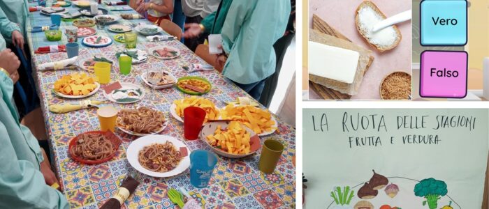 In un angolo allestito come un vero e proprio laboratorio del gusto, la classe terza ha proposto un confronto tra i cibi di ieri e di oggi. Con l’aiuto di racconti, disegni e assaggi “per gli occhi”, i bambini hanno esplorato l’evoluzione dell’alimentazione nel tempo, riflettendo su come le abitudini alimentari siano cambiate, ma anche su