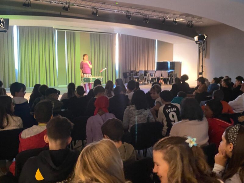 Il 18 novembre le nostre prime della secondaria, insieme agli alunni della scuola paritaria Molinatto, hanno avuto l’opportunità di incontrare la simpatica attrice Claudia Fontana nelle vesti della maga Jole che, trafelata, nel viaggio in bus da Como ad Oggiono ha scambiato, anche quest’anno, la sua valigia dei trucchi di magia con quella di un signore dall’aria molto natalizia! (Forse già circola Babbo Natale???). Dopo un attimo di panico, la nostra Jole non s’è persa d’animo ed ha intrattenuto i ragazzini con improbabili giochi di magia per poi a poco a poco trasportarli nel mondo magico (questo per davvero) dei libri e delle parole. Il libro fulcro quest’anno è stato “Nebbia “ di Marta Palazzesi, un libro di avventura e amicizia che è piaciuto ai nostri primini, così come la narrazione dell’attrice. Dopo le risate iniziali, il pubblico dei dodicenni ha saputo seguire la storia con attenzione. Al termine una domanda filosofica dell’attrice: che cosa ci rende LIBERI ?